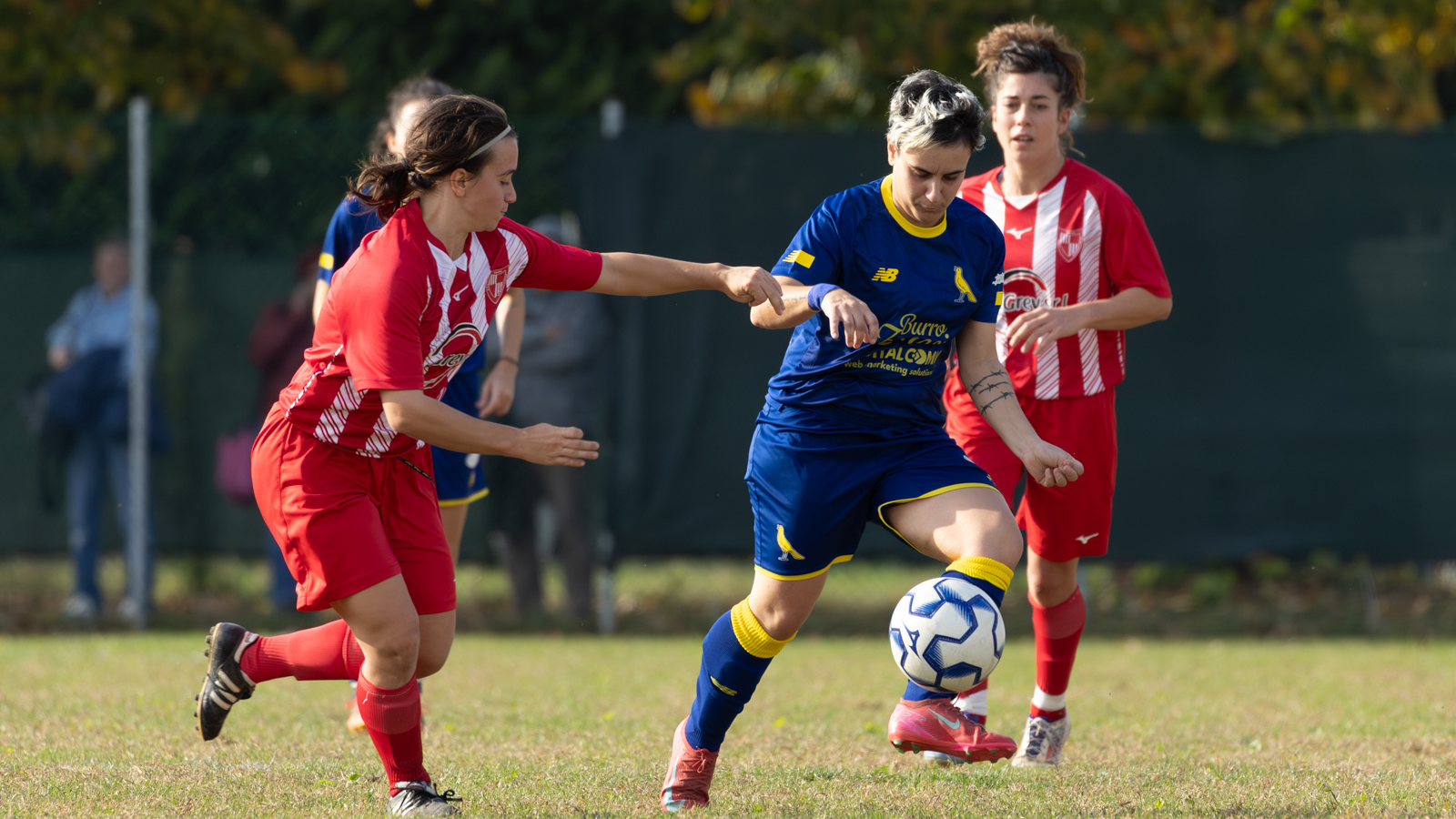 La reazione delle gialle si concretizza al 29′ con l’incornata di Nicolini sul corner di Pellegrino ma il pallone esce a fil di montante.